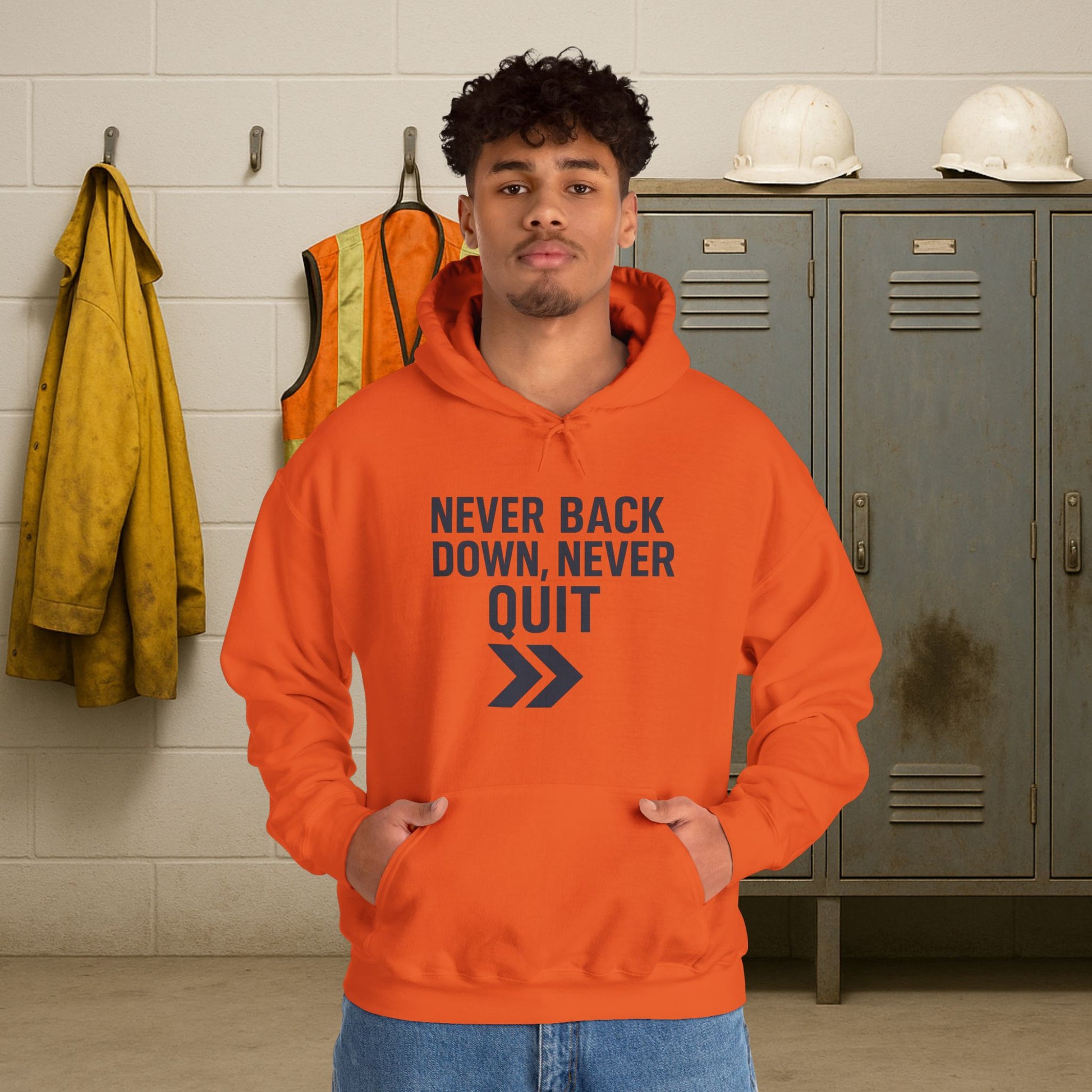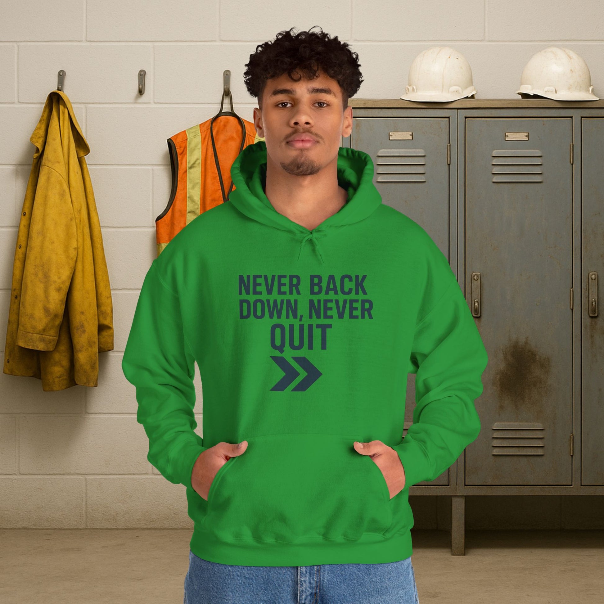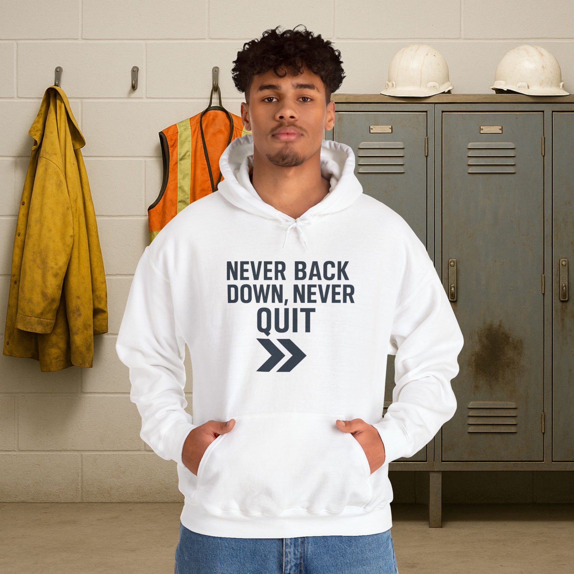'Never Back Down Never Quit' Men's Hoodie, Motivational Sweater
