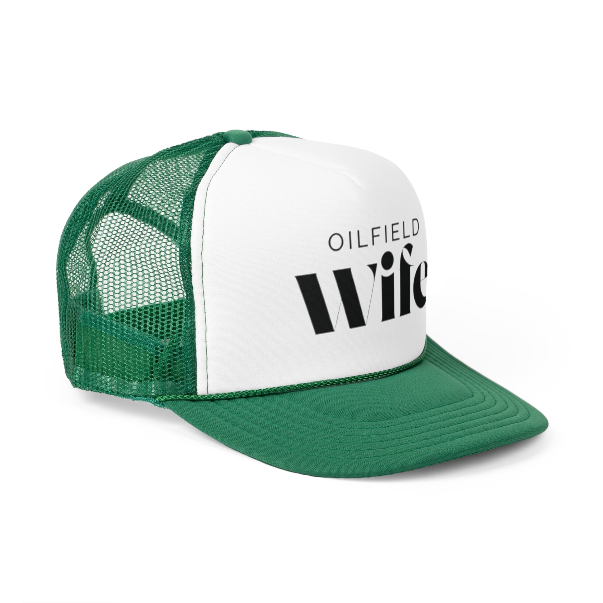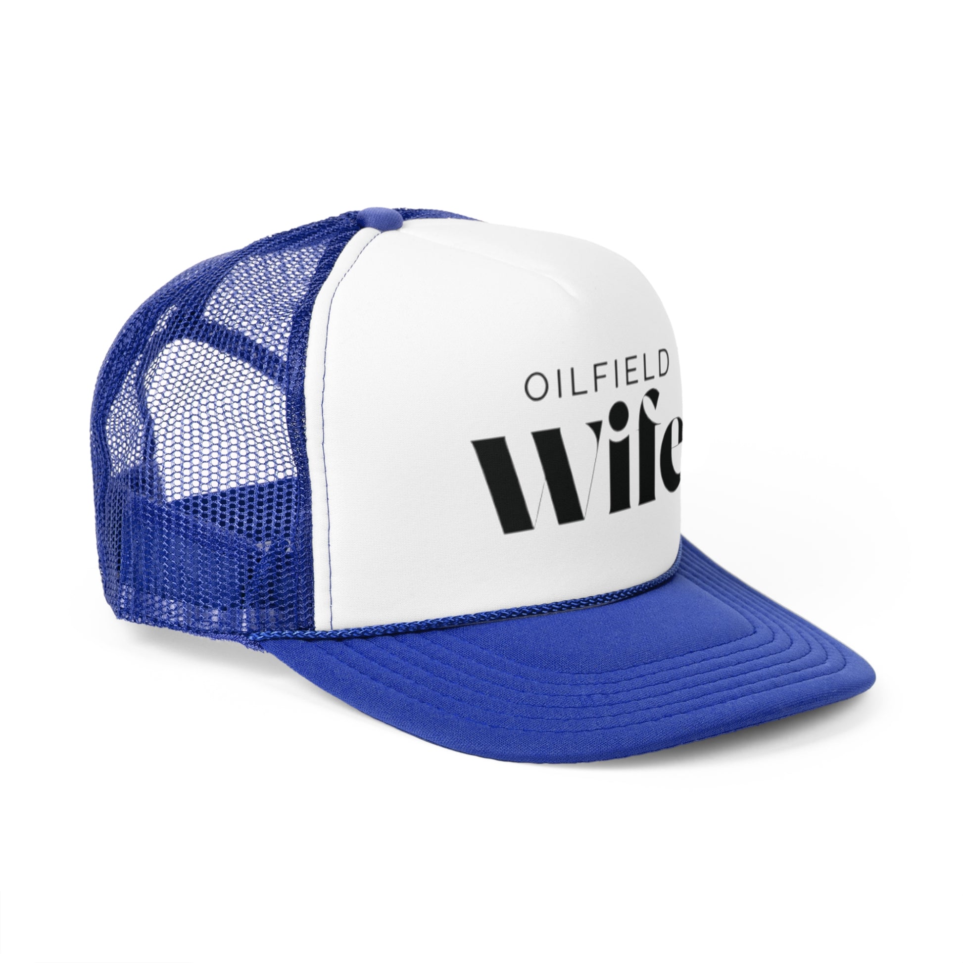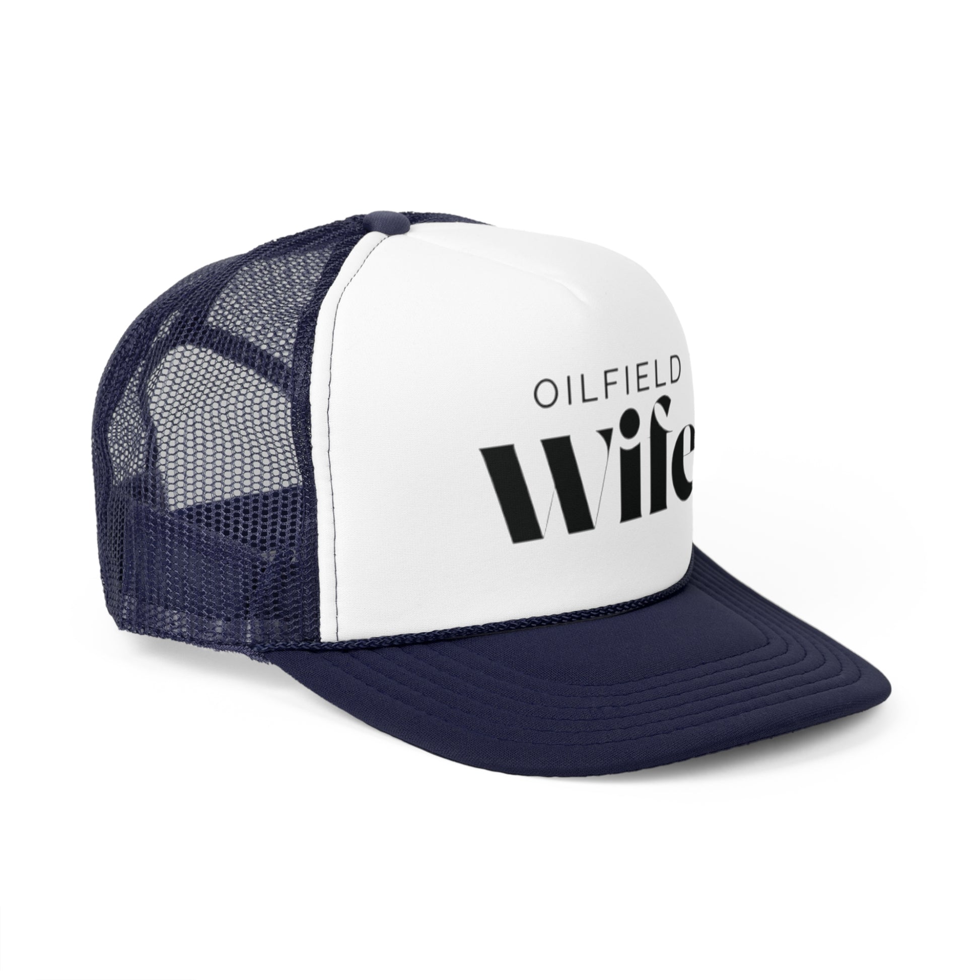 Celebrate your role as the proud partner of an oilfield worker with this stylish hat! Designed for oilfield wives, it features the bold and confident phrase 'Oilfield Wife,' showcasing your love and admiration for your hardworking spouse.